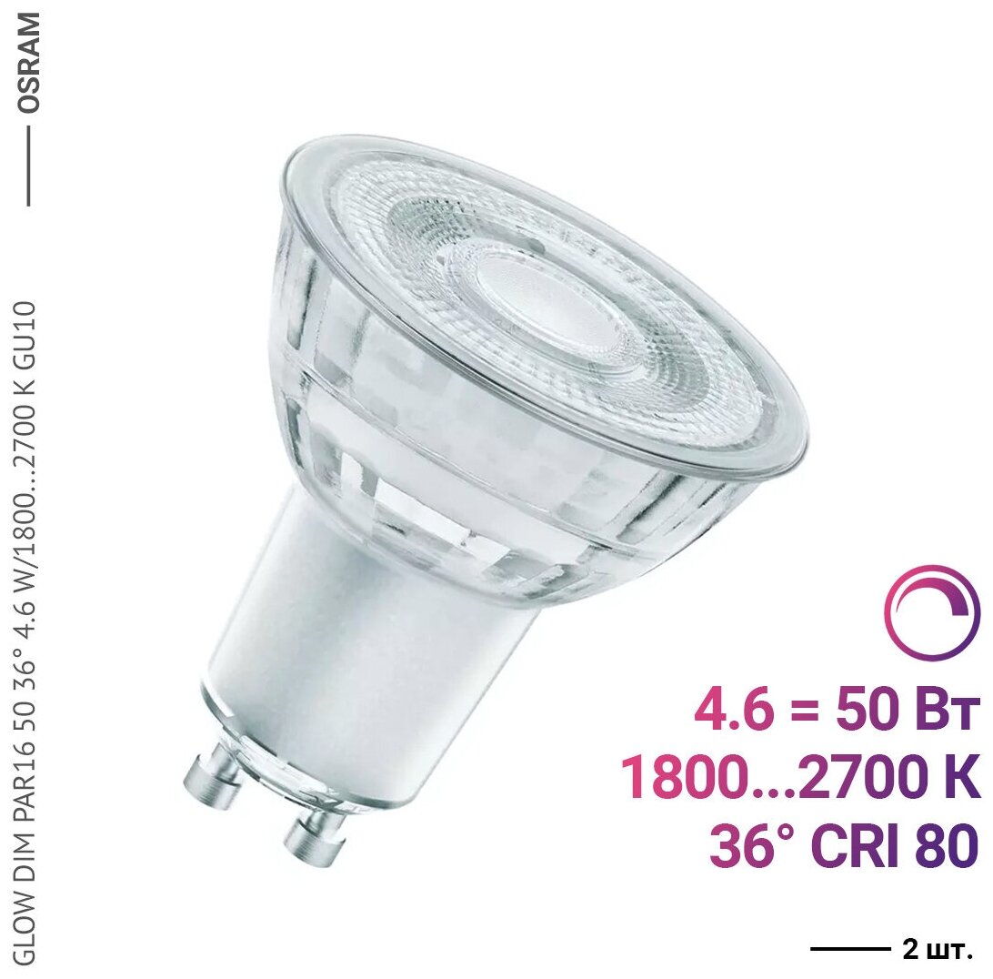 10 цен на Osram / Ledvance LED GLOW DIM PAR16 50 36 4.5 W/2200...2700 K GU10