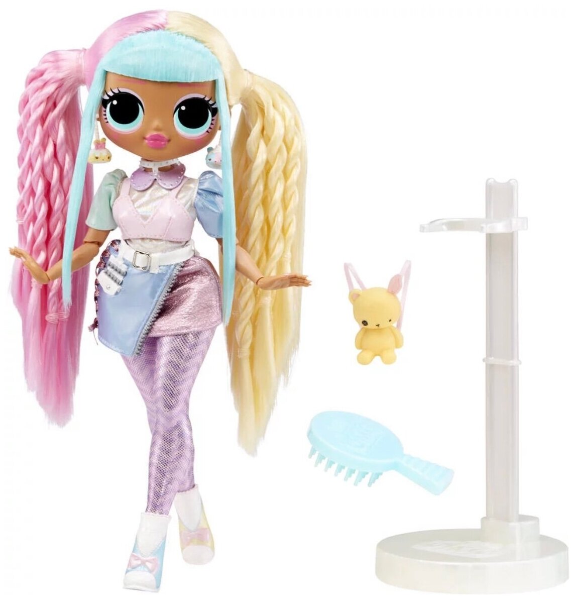 | Комплектация | Кукла, расчёска, сумочка зайчик, подставка для куклы |