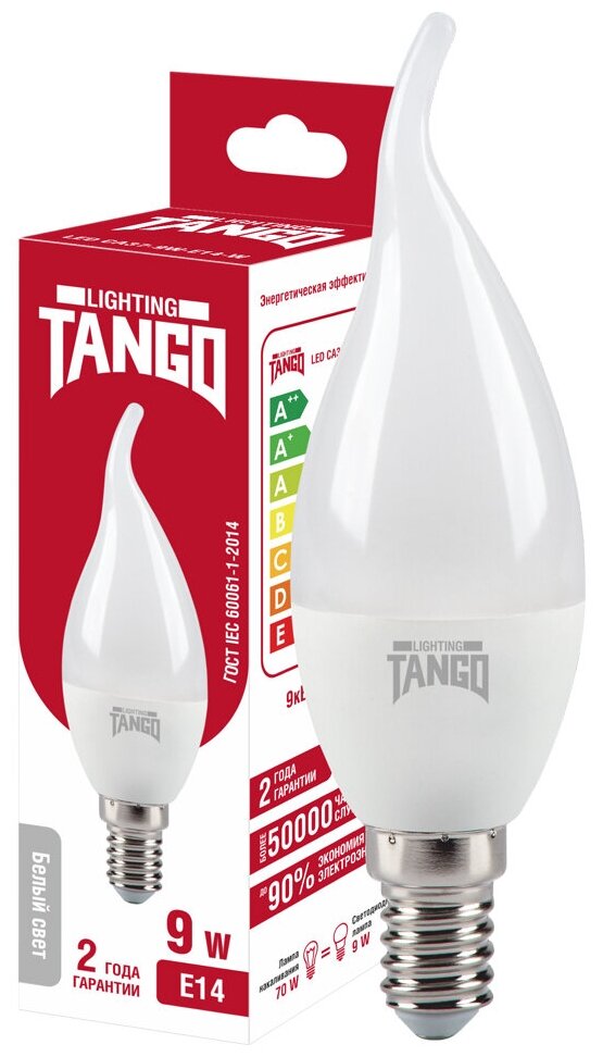 Отзывы на Лампочка светодиодная 9W E14 cвеча на ветру 4000K 220V (TANGO LED СА37-9W-E14-W) TANGO