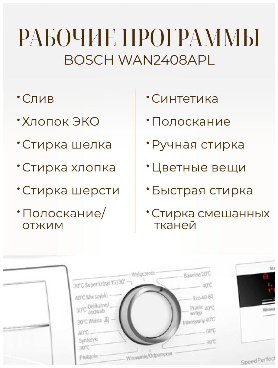 0 отзывов, средняя оценка 0. Чтобы купить «Стиральная машина Bosch WAN2408APL» по лучшей цене мы сканируем авито, алиэкспресс, маркет, озон, савеловский, плеер, горбушку, беру, официальные сайты и находим минимальную. Администрация не несет ответсвенность актуальность цен на Стиральная машина Bosch WAN2408APL, более подробно узнавайте на сайте магазина.