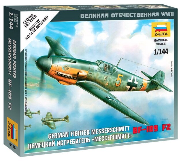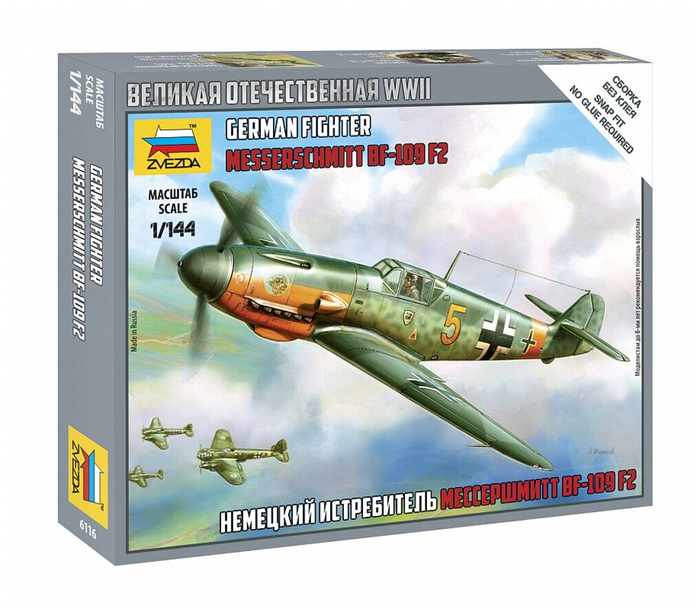 Сборная модель ZVEZDA Немецкий истребитель Мессершмитт BF-109F2 1/144
