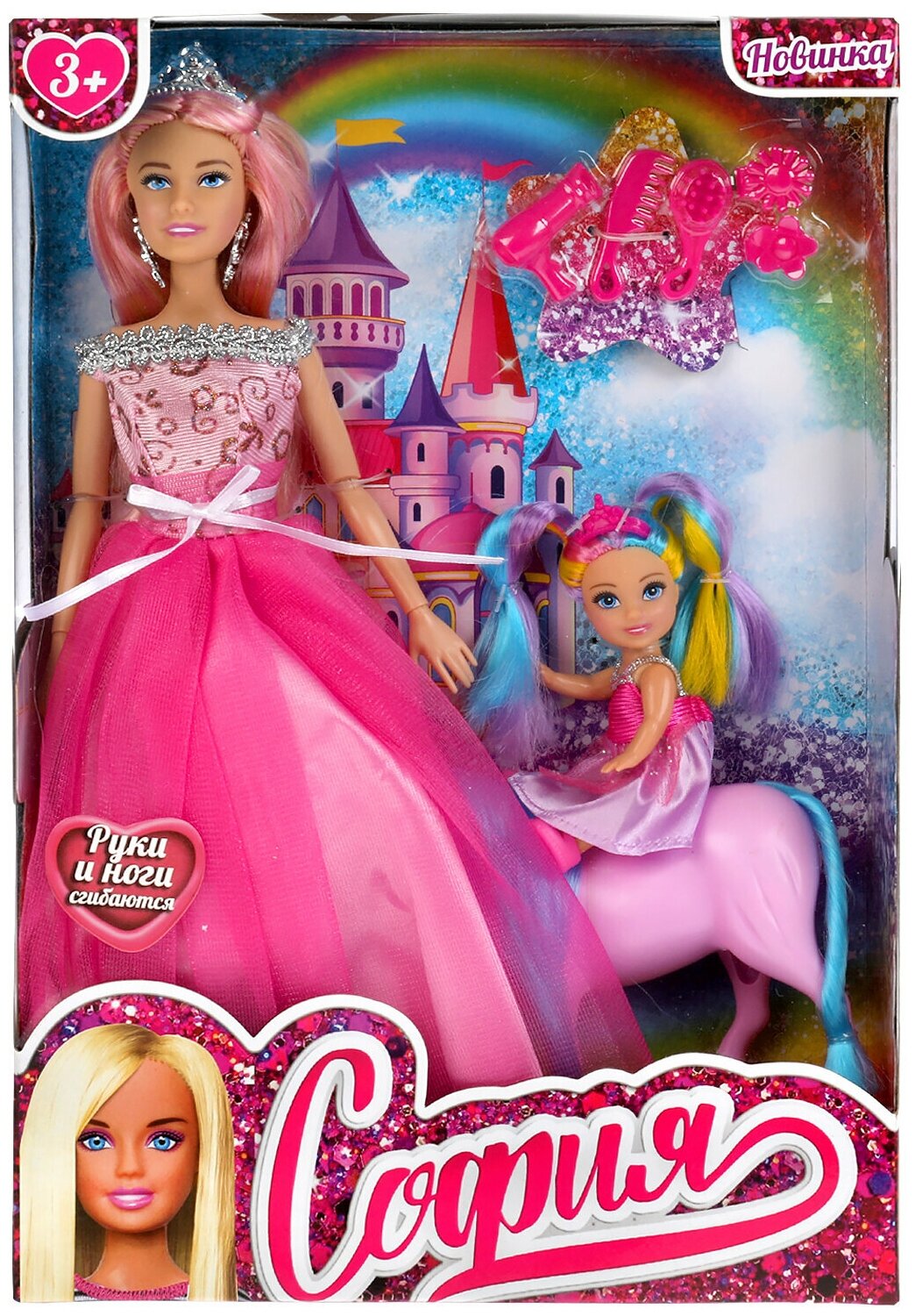 Шарнирная кукла София Принцесса с Анечкой, лошадью и аксессуарами, 29 см, ТМ Карапуз