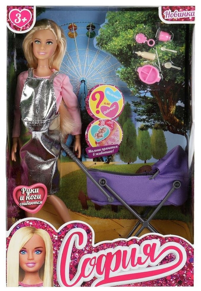 10 цен на Кукла 29 см София, малыш прячется в животике, руки и ноги сгиб, с аксессуарами