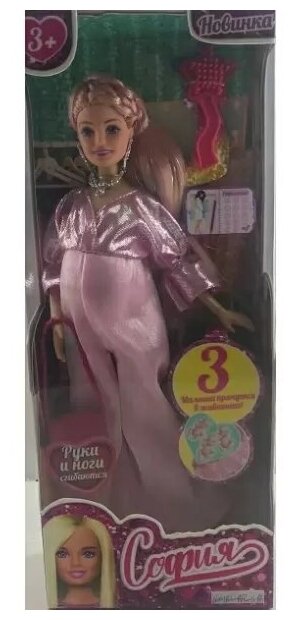 Кукла шарнирная София 29 см с машиной и аксессуарами, руки и ноги гнутся в суставах, Карапуз