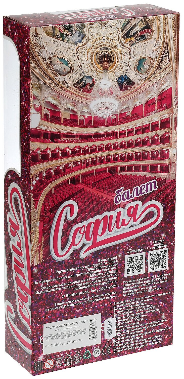 Кукла София, 29 см, (балерина, озвуч. 10 отрывк. из балета "Лебединное озеро") с аксс. в коробке информация: