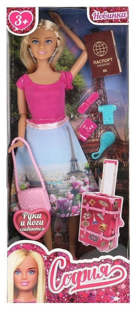 Кукла София, 29 см. (путешествие в Париж, в комплекте акссес, для путешественика) в коробке информация: