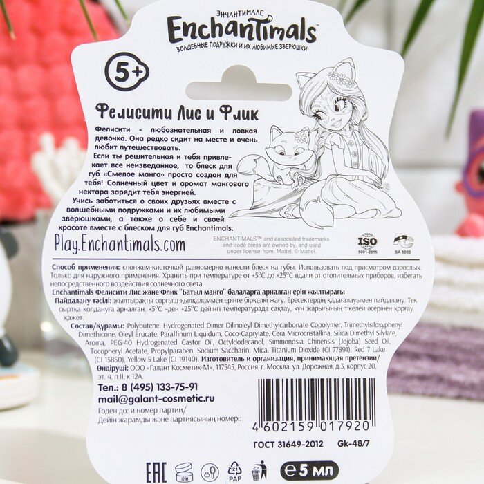 Enchantimals Детский блеск для губ Enchantimals Фелисити Лис и Флик «Смелое манго», 5 мл, , шт информация:
