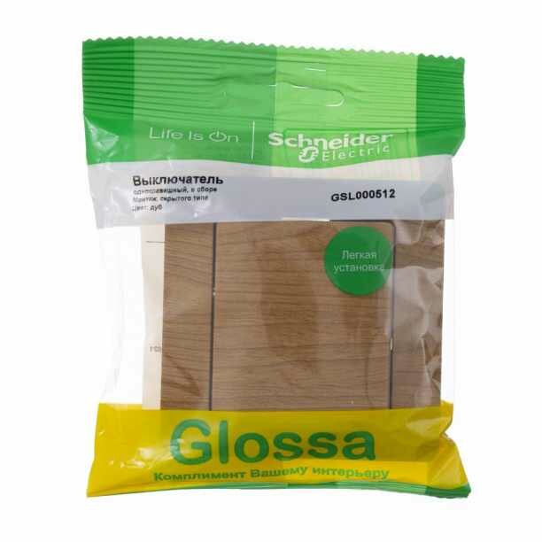 Выключатель одноклавишный Schneider Electric Глосса с рамкой дуб информация:
