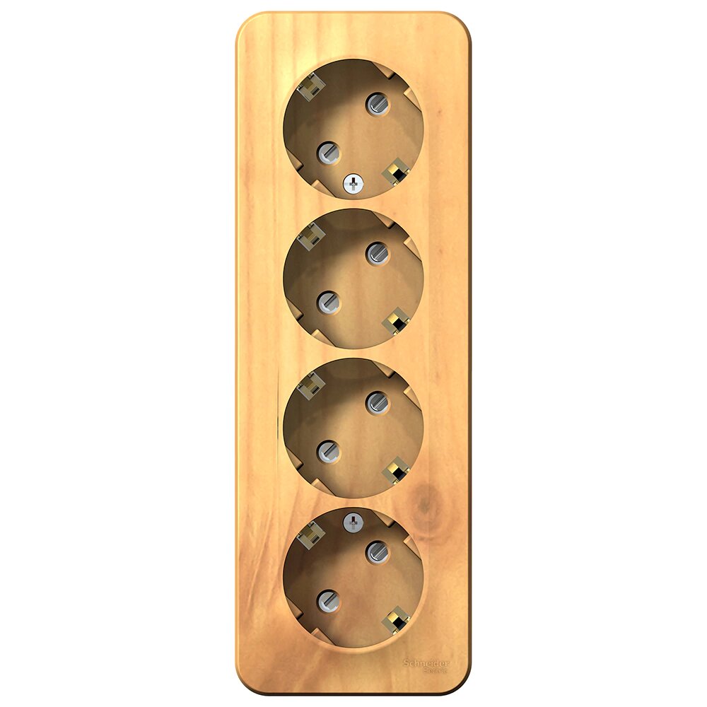 Розетка четырехместная BLANCA, открытый монтаж, с заземлением, со шторками, ясень | код. BLNRA011415 | Schneider Electric (4шт.в упак.)