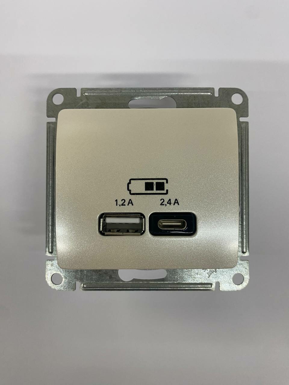 Розетка USB Glossa тип A+C 5В/2.4А 2х5В/1.2А механизм перламутр. SchE GSL000639 информация: