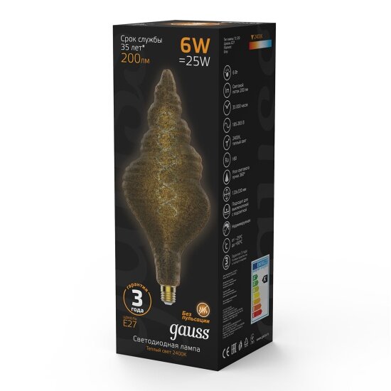 Светодиодная лампа Gauss Led Vintage Filament Flexible TL120 6W E27 120*330mm 2400K 1/10 информация: