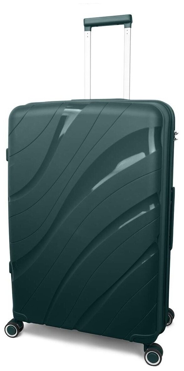 Чемодан на колесах дорожный средний багаж для путешествий женский m Тевин размер М 64 см 62 л легкий 3.2 кг прочный полипропилен Зеленый темный волна информация: