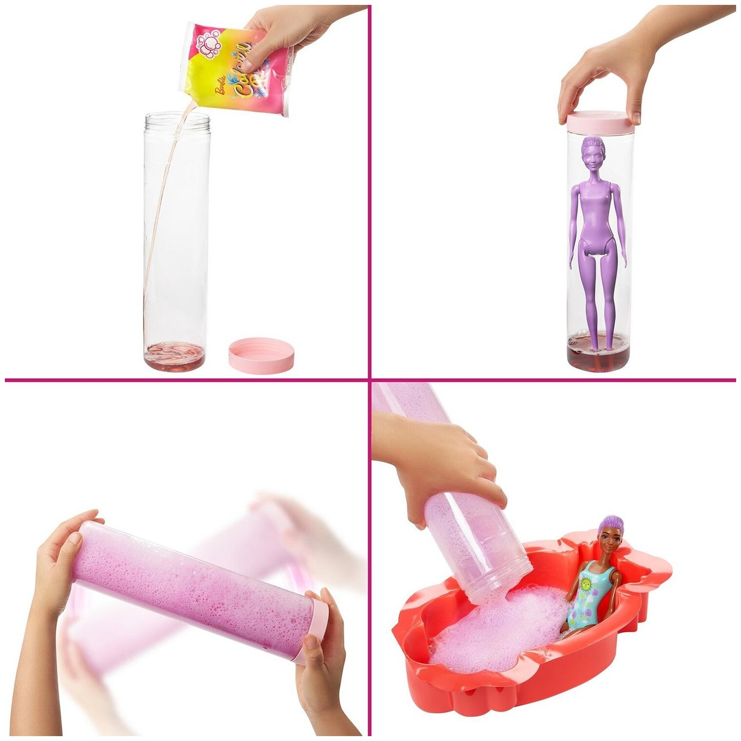 | Дополнительная информация | поместите куклу в тубу с теплой водой и пенным раствором, взболтайте и узнайте, как она выглядят; чередуйте холодную и теплую воду, чтобы изменить дизайн лифа, волос и аксессуара куклы |
