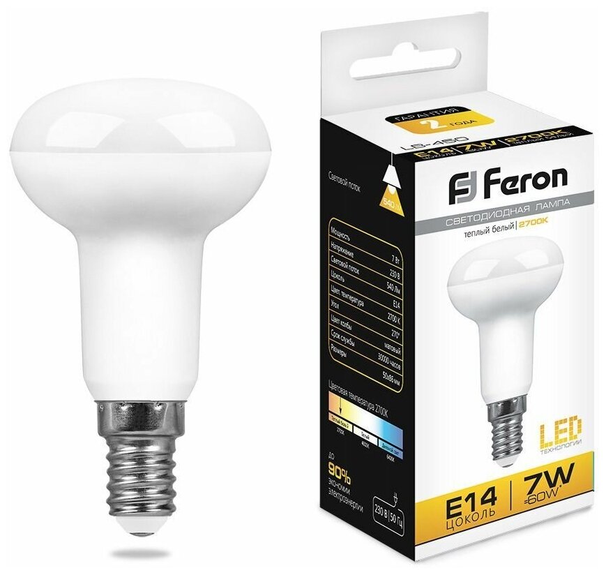 Отзывы на Лампа светодиодная, (7W) 230V E14 2700K R50, LB-450, комплект 3 шт.