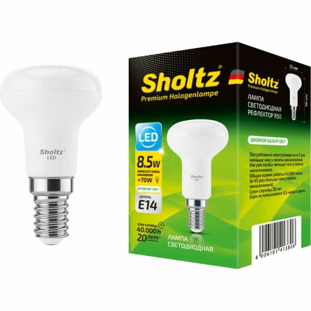 10 цен на Лампа светодиодная энергосберегающая Sholtz 8,5Вт 220В рефлектор R50 E14 4000К пластик(Шольц) LER4138