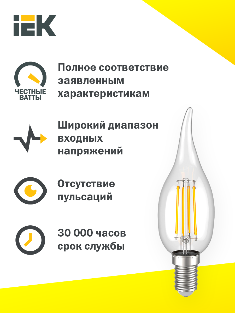 Лампа светодиодная LED IEK Свеча на ветру, серия 360°, E14, CB35, 7 Вт, 3000 K, теплый свет информация: