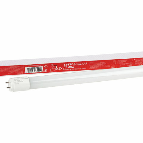 Лампа-трубка светодиодная ЭРА Эко, комплект 10 шт., 10 Вт, 25000 ч, 600 мм, холодный белый, ECO LED T8-10W-865-G13-600mm информация: