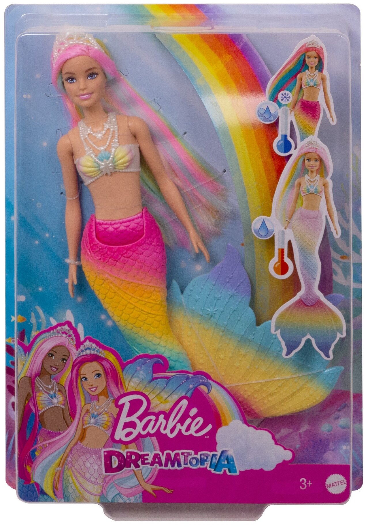 Кукла Barbie Русалочка с разноцветными волосами (меняющая цвет) GTF89