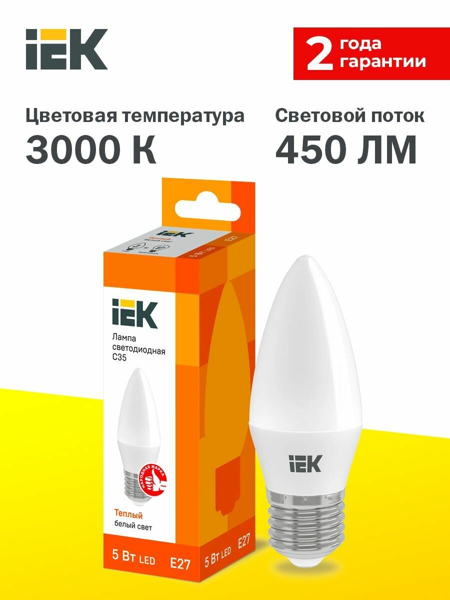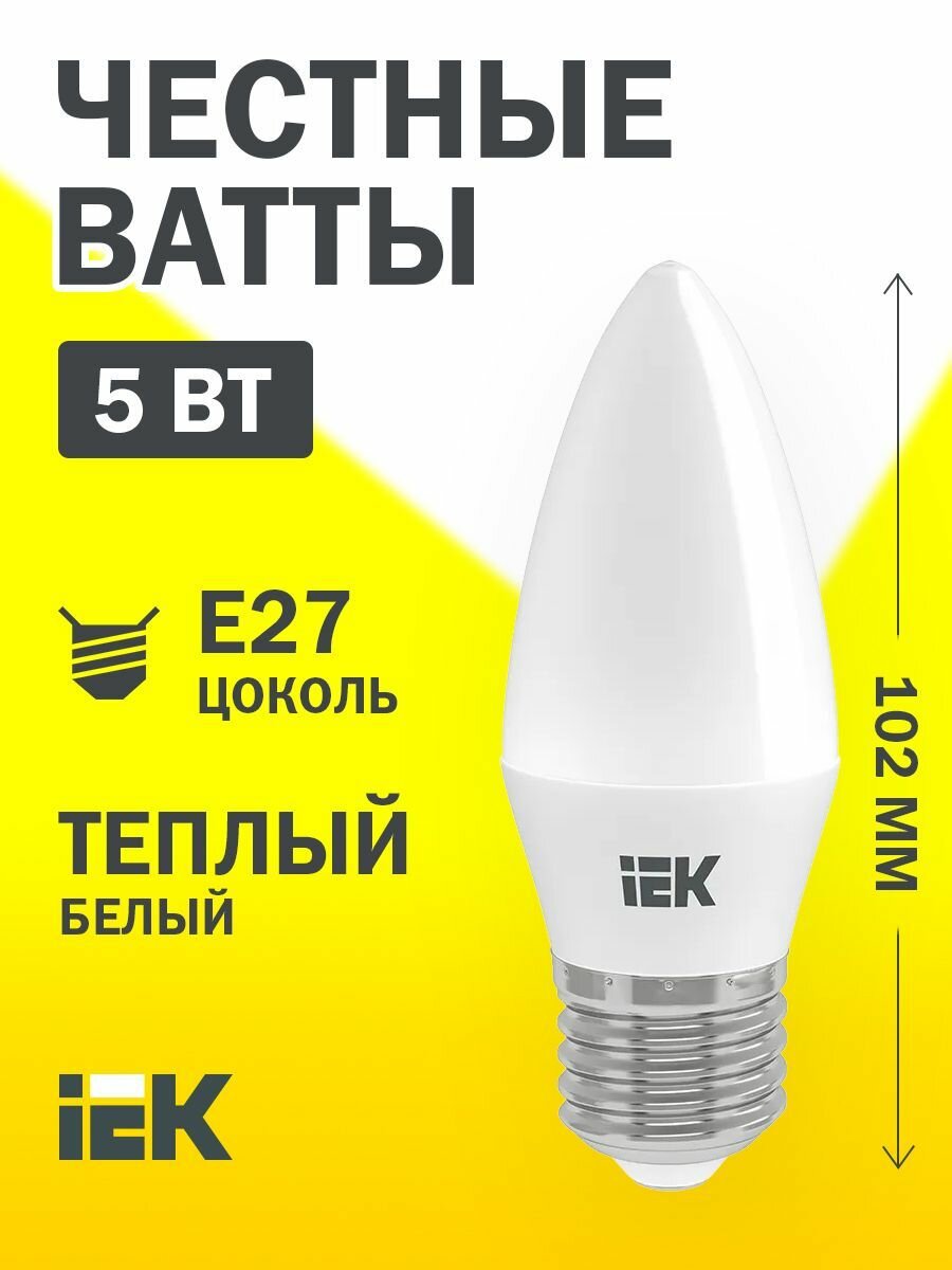 Отзывы на Лампа светодиодная LED свеча 5W Е27 450Лм 3000К 220V (IEK), арт. LLE-C35-5-230-30-E27