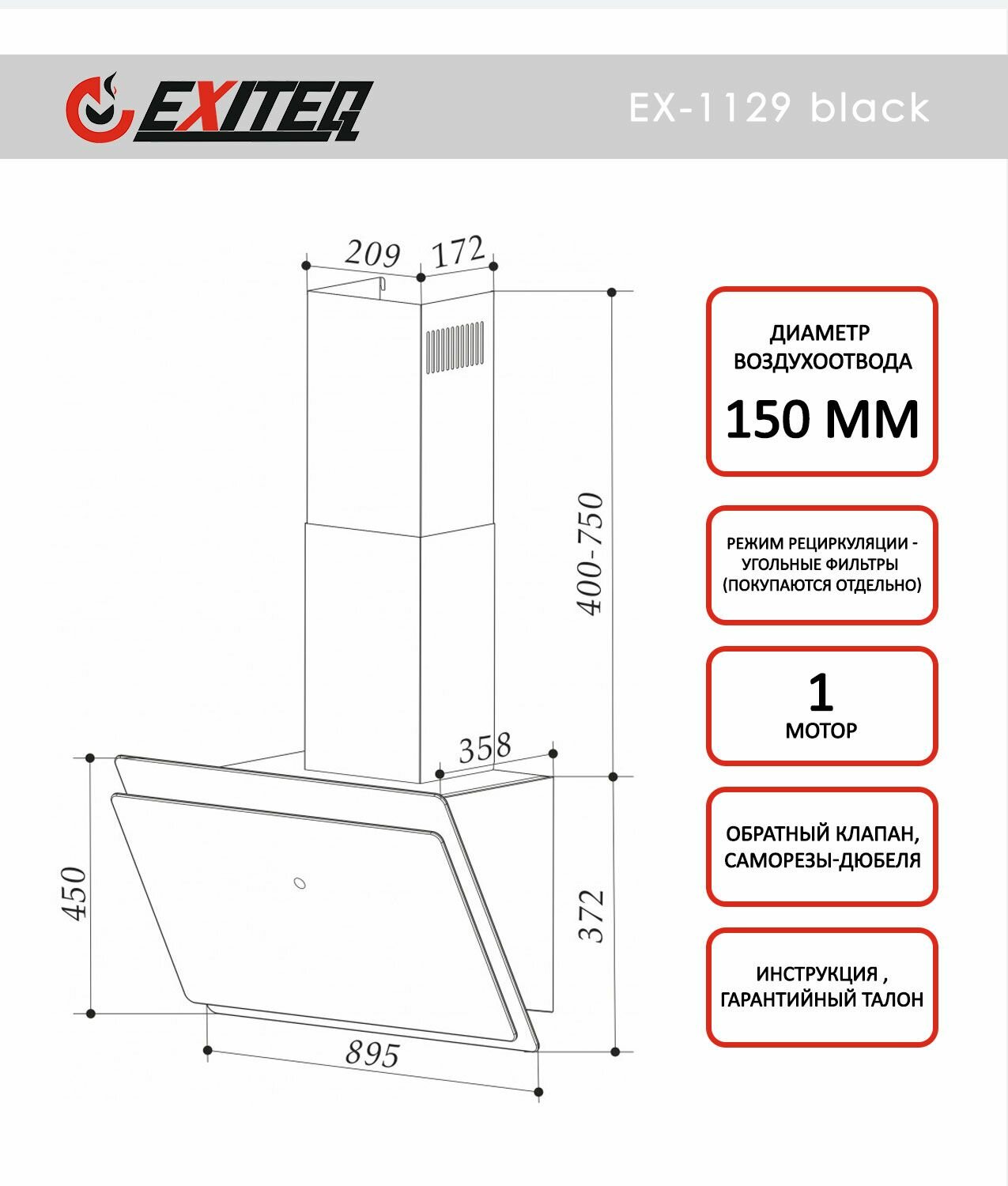 Вытяжка Exiteq EX - 1129 информация: