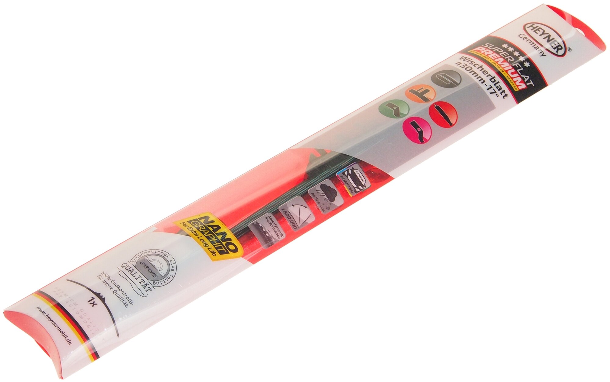 Щетка стеклоочистителя HEYNER Super Flat Premium, 17", 430 мм, бескаркасная, с переходниками