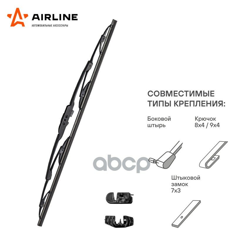 Щетка Стеклоочистителя 450 Мм (18") Каркасная, 2 Адаптера AIRLINE арт. AWBK450