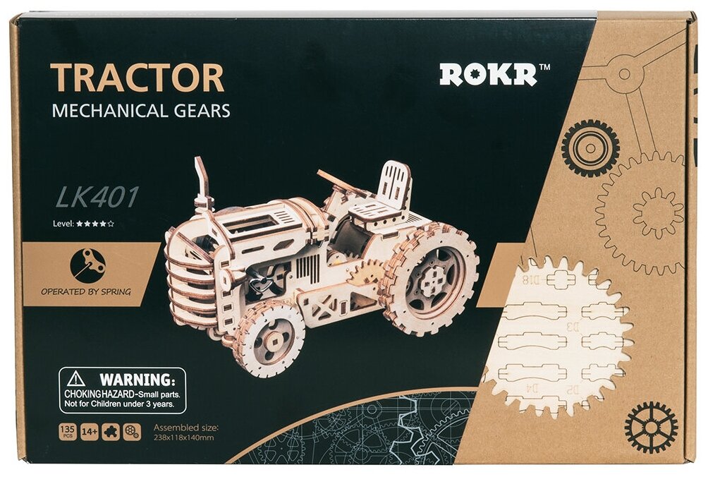 10 цен на Деревянный конструктор Robotime ROKR - Трактор (Tractor); 136 дет; 23,8*11,8*14 см; арт. LK 401