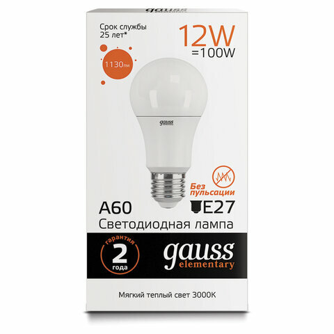 Отзывы на Лампа светодиодная GAUSS, комплект 10 шт., 12(100)Вт, цоколь Е27, груша, теплый белый, 25000 ч, LED A60-12W-3000-E27, 23212