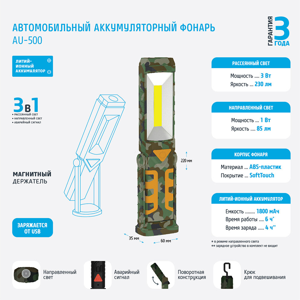 Фонарь рабочий Фотон камуфляж 3 Вт+1 Вт аккумуляторный информация: