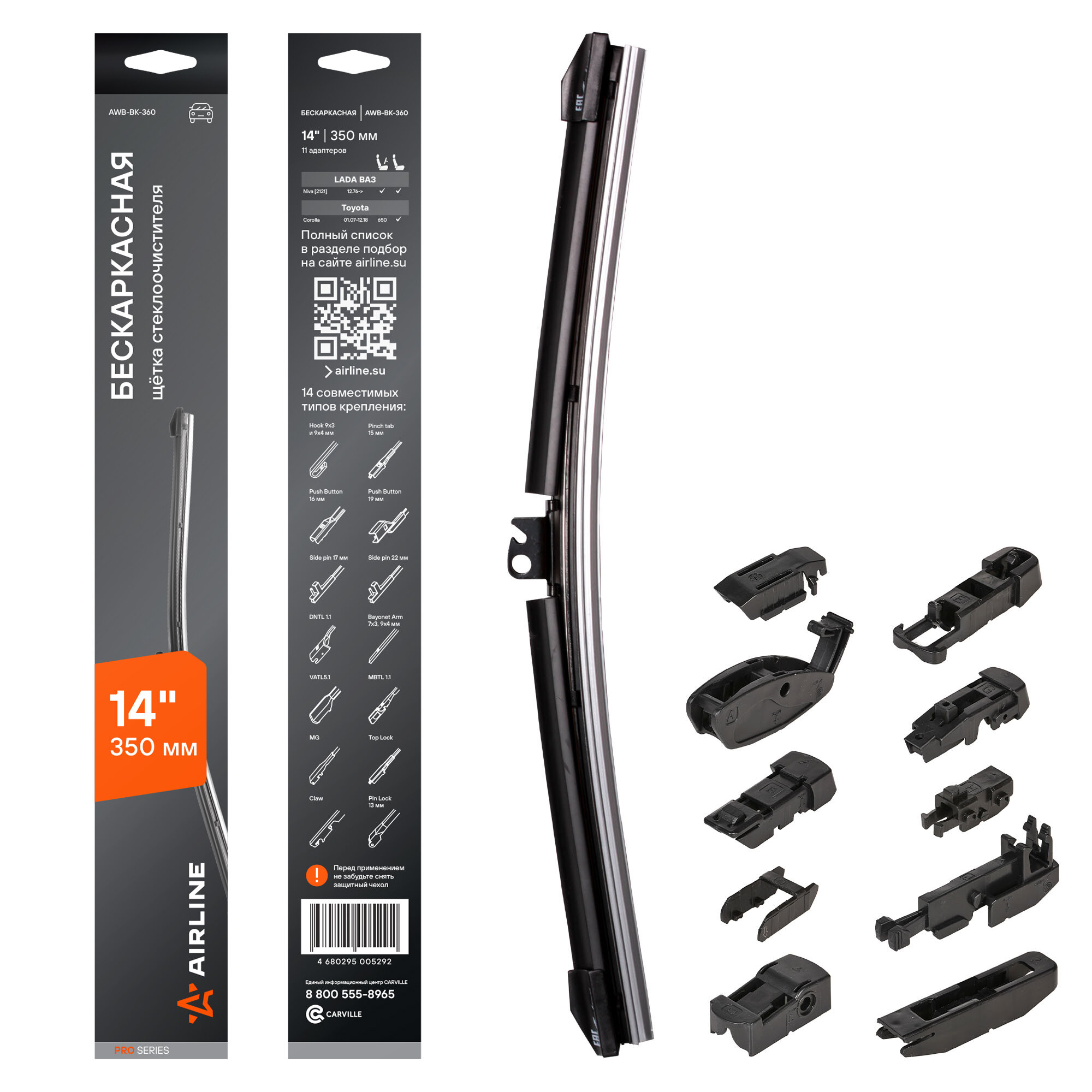 Щетка стеклоочистителя бескаркасная PRO 360мм (14") 10 адаптеров AWB-BK-360 AIRLINE