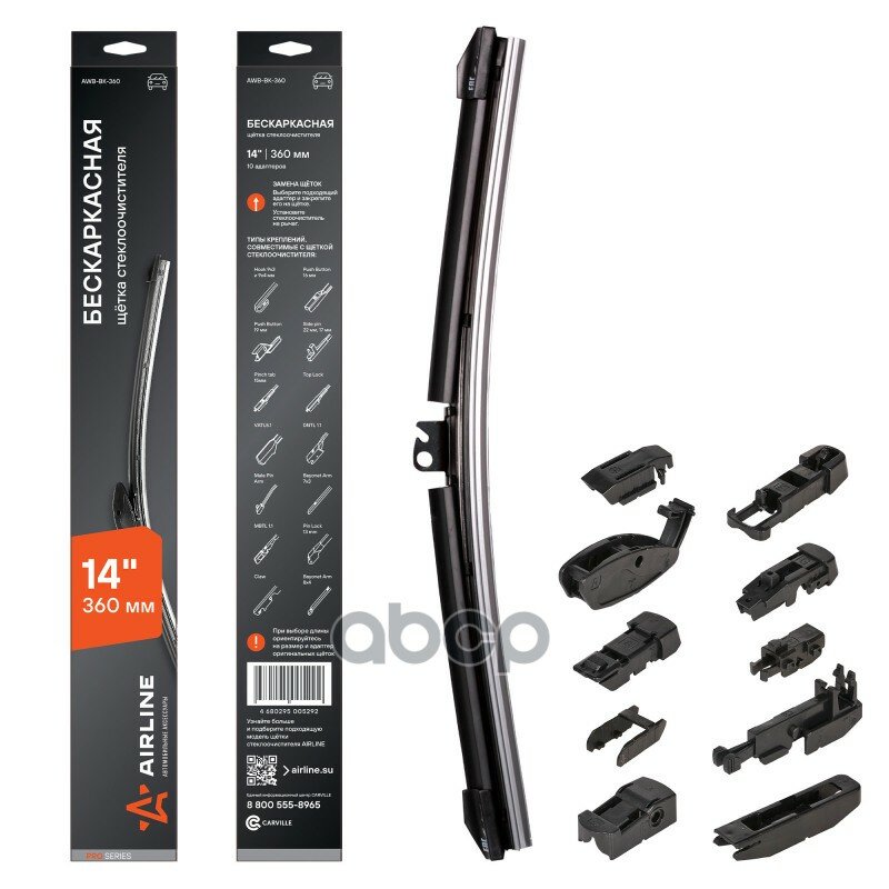Щетка Стеклоочистителя Бескаркас Pro 360Мм (14") 10 Адаптеров (Awb-Bk-360) AIRLINE арт. AWB-BK-360