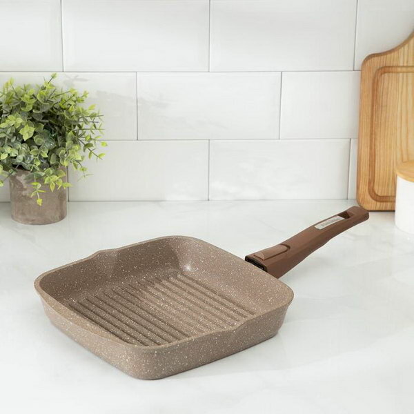 Сковорода-гриль "Гранит", 24x24 см, съёмная ручка, стеклянная крышка, антипригарное покрытие, цвет коричневый информация: