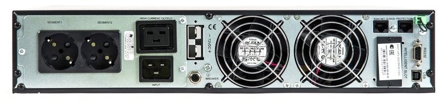 | Особенности | возможность установки в стойку / автоматический By-pass / возможность замены батарей / горячая замена батарей / звуковая сигнализация / подключение дополнительных батарей / фильтрация помех / холодный старт |