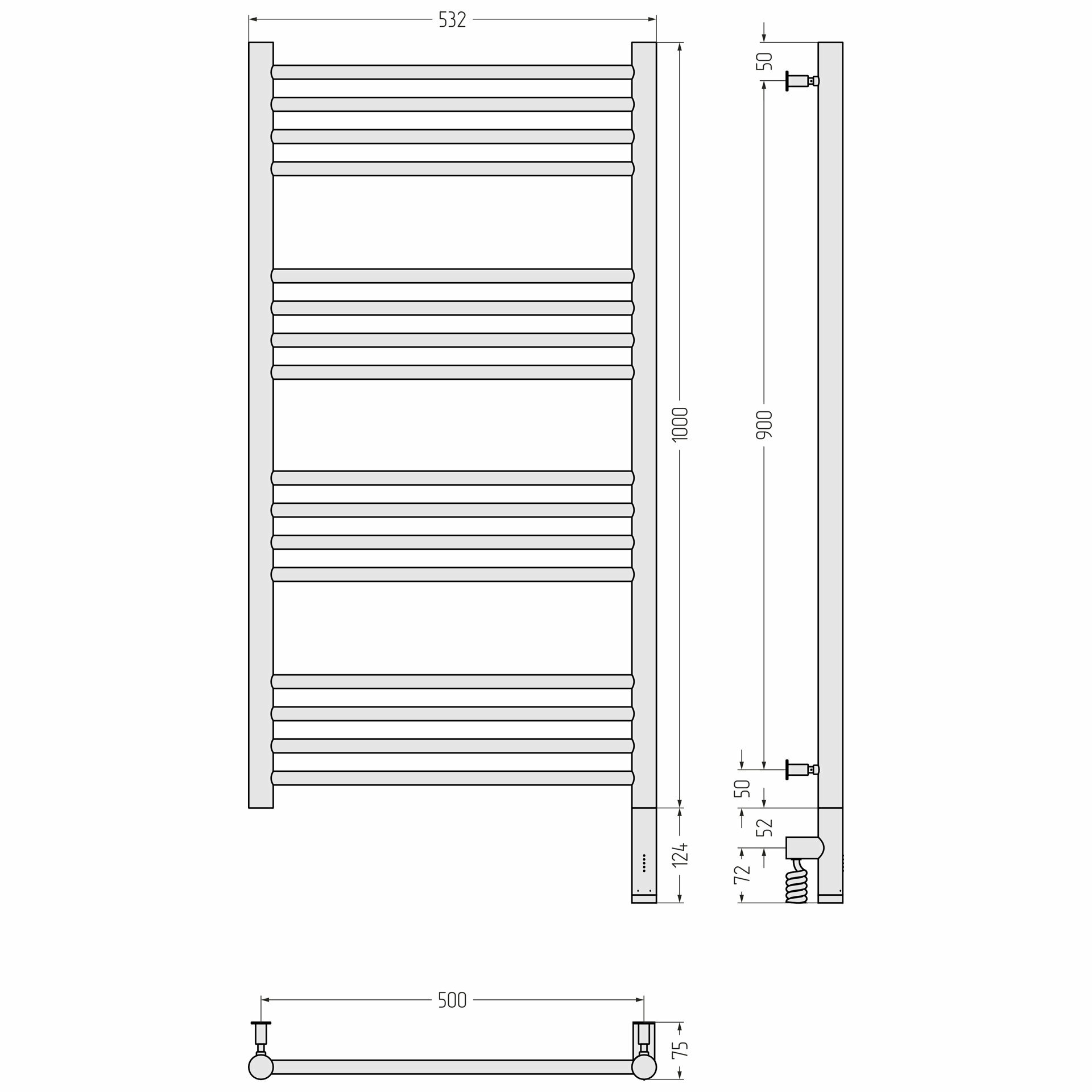 Полотенцесушитель электрический "богема 3.0" прямая 1000х500 / МЭМ правый (Без покрытия)