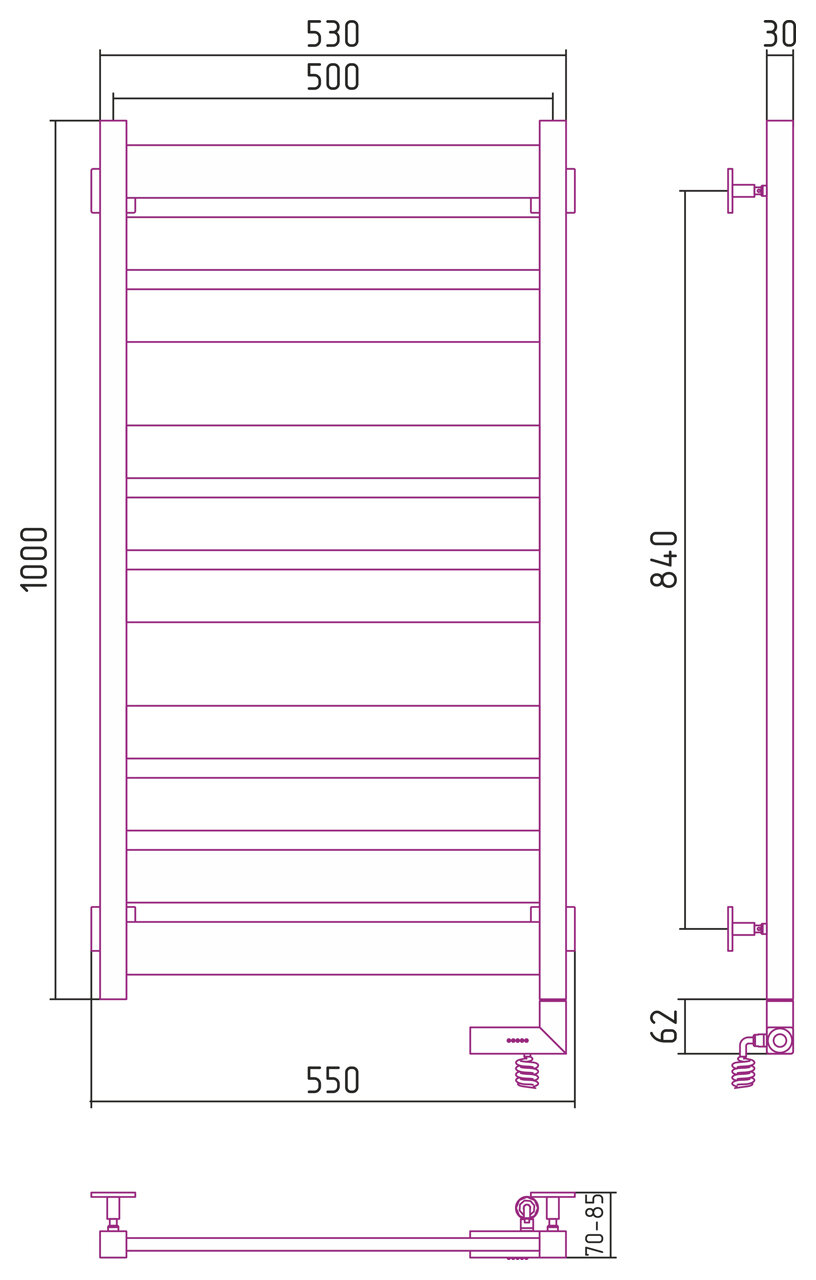 Полотенцесушитель электрический Маргроид В10 30х80, таймер, черный матовый