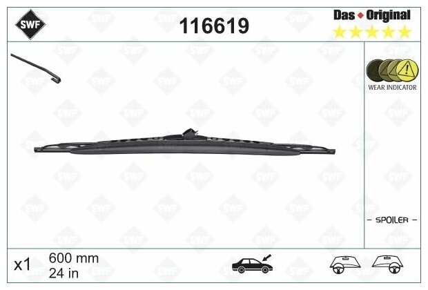 Swf^116 619 Стеклоочиститель 600мм Swf арт. 116 619