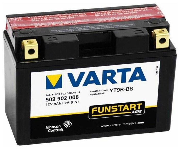 VARTA 509902008 Аккумуляторная батарея POWERSPORTS AGM [12V 8Ah 115A B00]