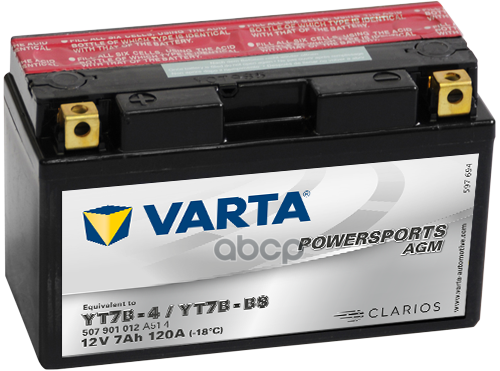 507901012 _аккумуляторная Батарея Рус 7ah 120a 150/66/94 Yt7b-Bs Powersports Agm Moto Varta арт. 507901012 4 102 ₽