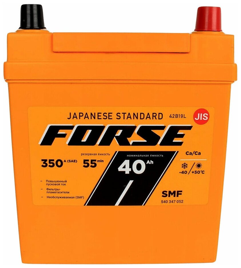 Аккумуляторная батарея FORSE 42B19L 6СТ40 азия обратная информация: