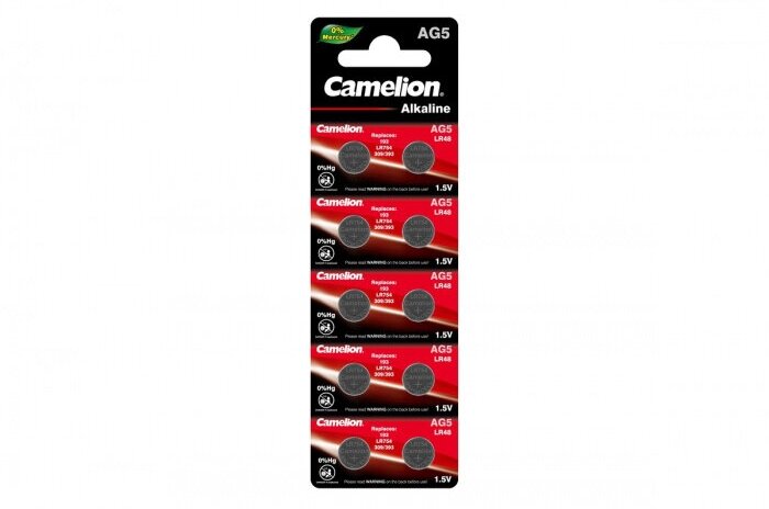 Отзывы на Элемент питания алкалиновый "таблетка" G 5 Mercury Free AG5-BP0%Hg 393A/LR754/193 BL-10 (блист.10шт) Camelion 12813 ( 1упак. )