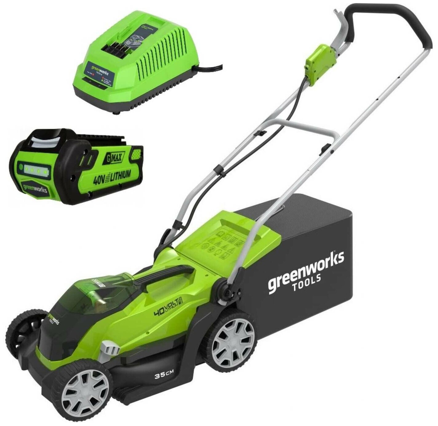 Газонокосилка аккумуляторная GreenWorks G40lm35k2, 40V, 35 см, c 1хАКБ 2 А.ч и ЗУ G40LM35K2