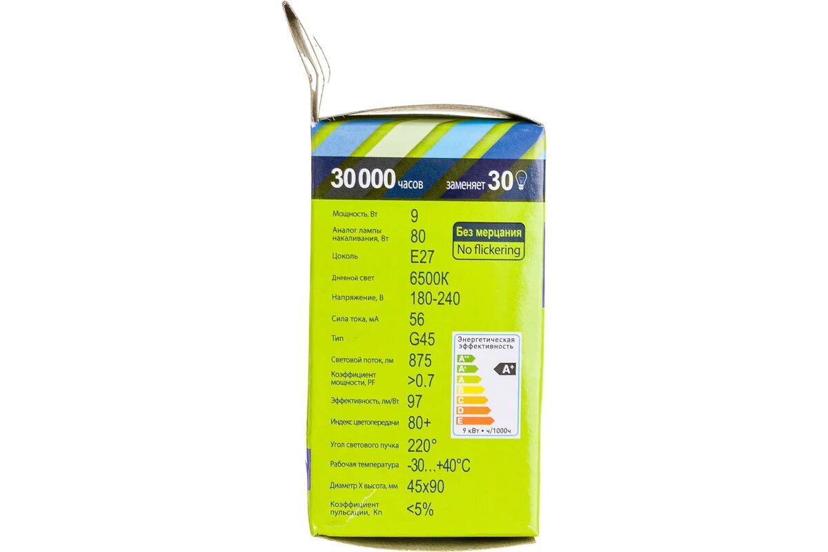 Лампа светодиодная Ergolux 13178, E27, G45, 9Вт, 6500 К информация: