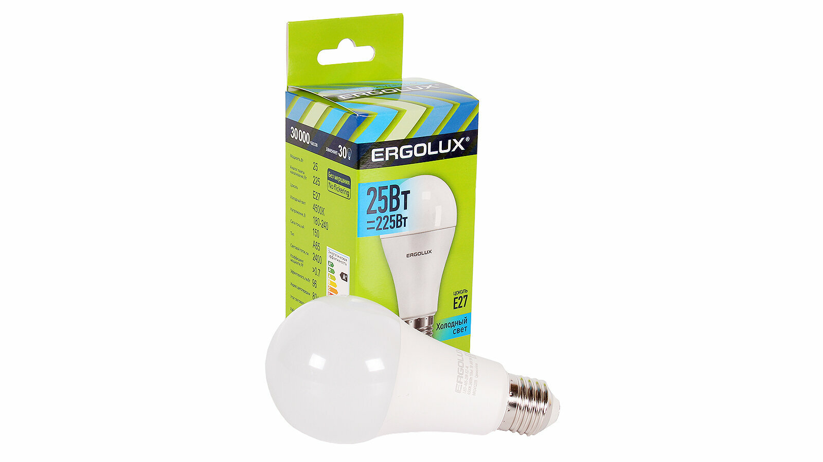 Отзывы на Эл.лампа светодиодная ЛОН LED-А65-25W-E27-4K (25Вт=225Вт 2400Lm E27 4500K 180-240В) Ergolux