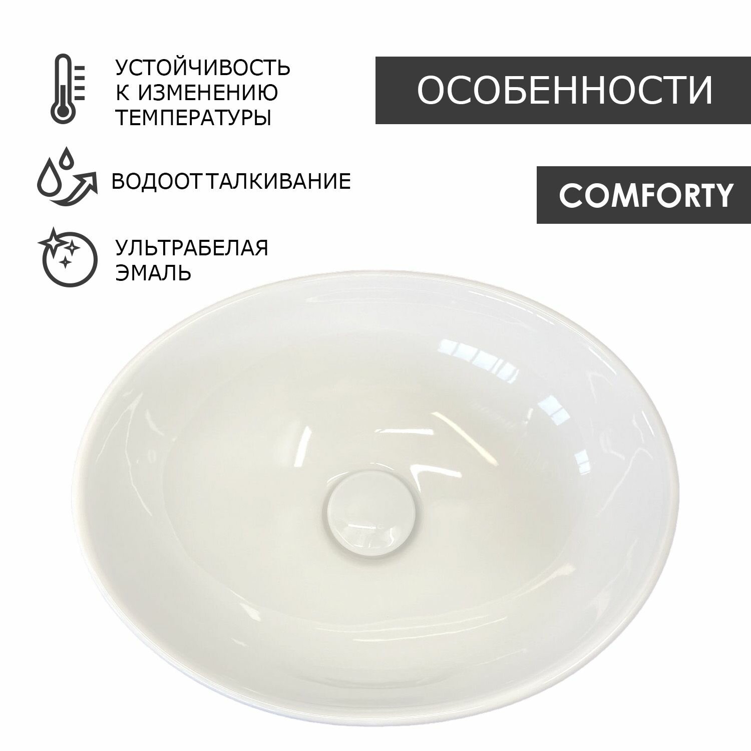 10 цен на Раковина COMFORTY T-K60 (накладная, без отв. под смеситель, без перелива)