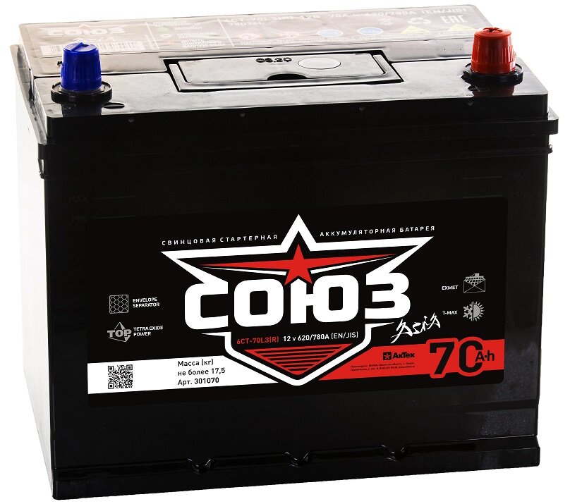 Отзывы на Аккумулятор автомобильный Союз Asia 70 А/ч 620 А обр. пол. 75D26L Азия авто (260х175х220) с бортиком 2021г