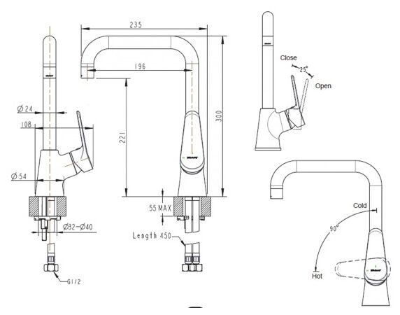 | Высота излива | 221 мм |