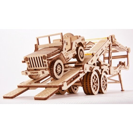 10 цен на Сборная модель WOOD TRICK Прицеп Автовоз с джипом