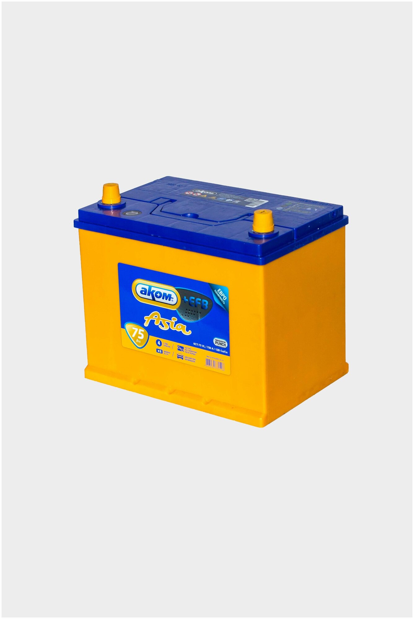 Аккумулятор автомобильный АКОМ (Akom) ASIA EFB 75 А/ч 750 А обр. пол. Азия авто (260x173x225) с бортиком информация: