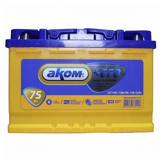 Автомобильный аккумулятор Аком + EFB 75 (750 A) информация: