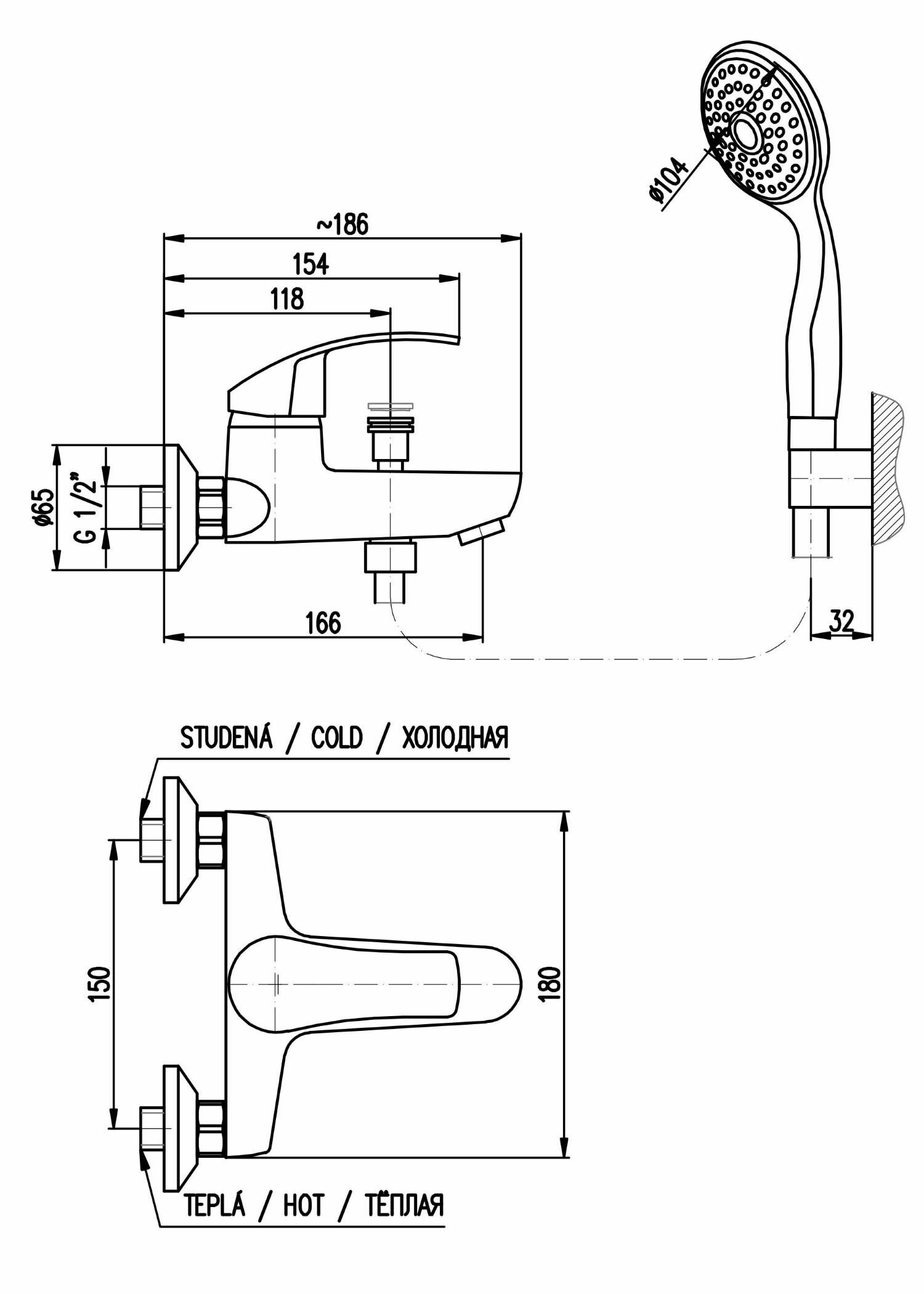 Смеситель для ванны RAV Slezak Mississippi с лейкой, фиксированный держатель, хром MS054.5/1 информация:
